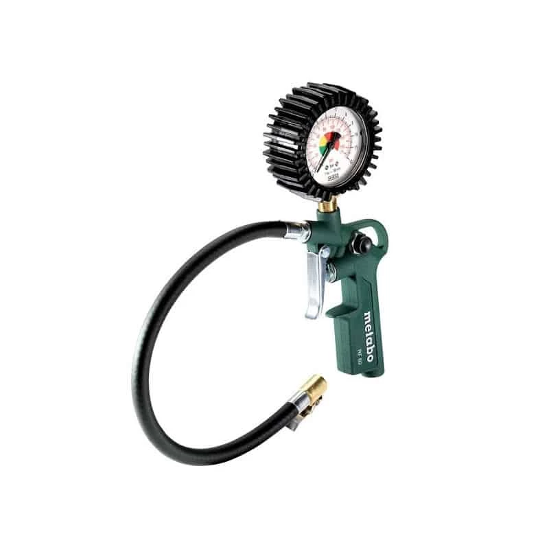 Ensemble d’accessoires LPZ 4 Metabo pour compresseurs d’air composé d’une souflette, d’un pistolet de gonflage des pneus, d’un pistolet à peinture avec réservoir et d’un flexible spiralé en polyamide (PA).