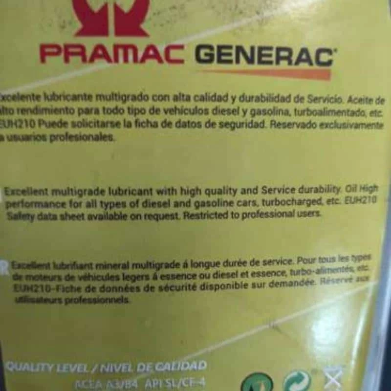 Le bidon d’huile 1 litres est destiné aux groupes électrogène de la marque PRAMAC.