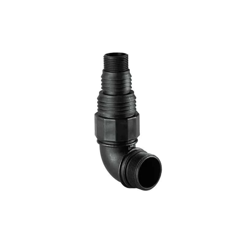 Raccord coudé avec adaptateur multilple 1 1/2″ pour le raccordement des pompes immergés ou de surpresseurs Metabo aux flexibles d’écoulement, d’aspiration ou de jardin.