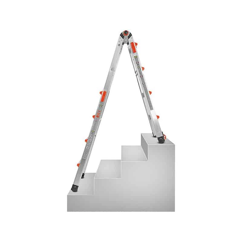 La Velocity est utilisable dans une douzaine de positions : escabeaux, en extension, dans les escaliers, ou encore à 90° contre le mur. L’embase des montants de la Velocity est évasée pour un sentiment de sécurité et de stabilité