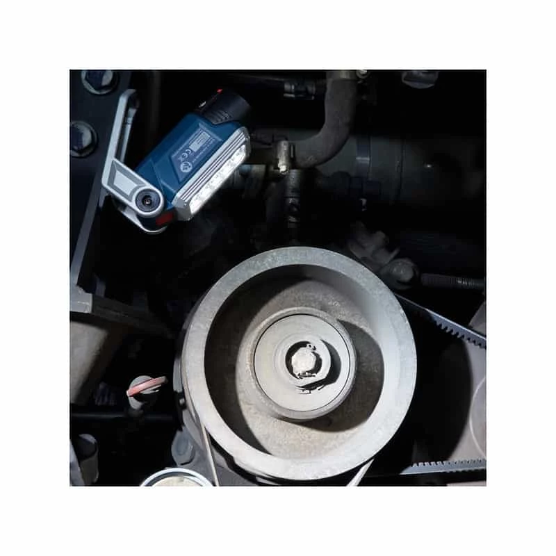 La lampe de travail polyvalente sans fil 12V de Bosch possède une luminosité extrême : 10 LED avec deux niveaux de luminosité pour un éclairage parfait