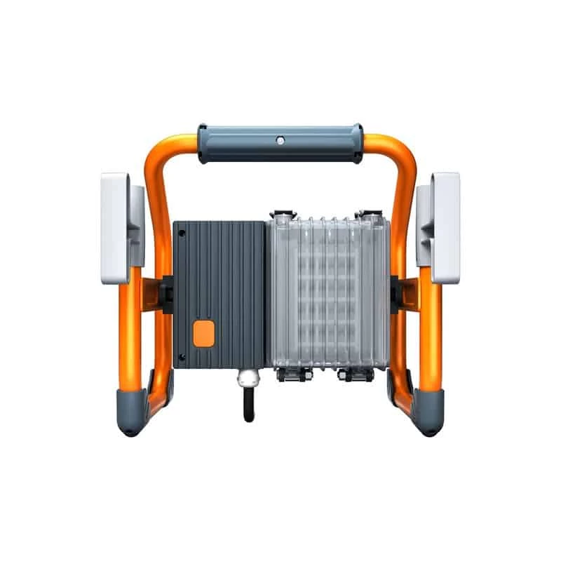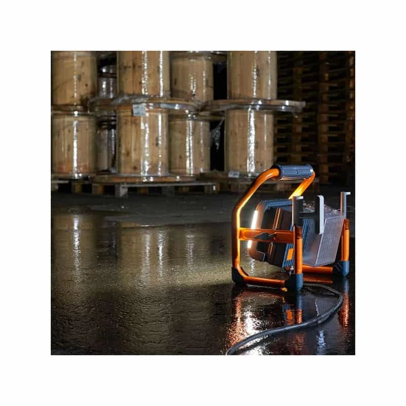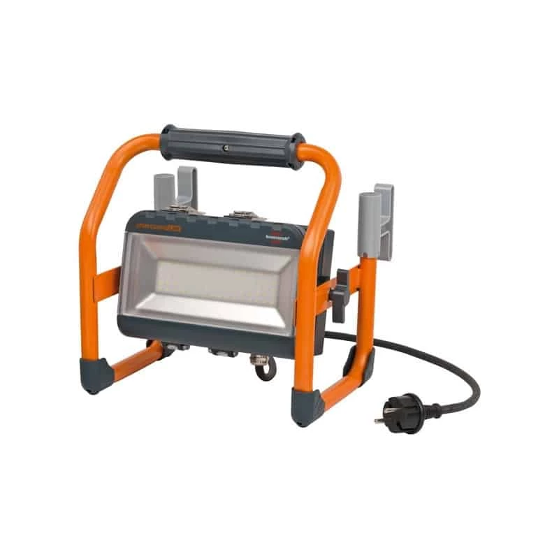 Projecteur LED hybride de Brennenstuhl : sa technologie hybride permet d’utiliser le projecteur avec une batterie Li-ion ou sur secteur. Brennenstuhl a intégré un système de batterie Bosch : toutes les batteries Bosch Pro de 18V Li-ion sont compatibles avec le projecteur. Le capot de batterie fermé protège la batterie contre les projections d’eau et de poussières. L’autonomie annoncée sur batterie de 5Ah est de 2.5 heures pour une utilisation à 100% et de 5 heures pour une utilisation à 50%, grâce à son réglages sur 2 modes d’éclairage. Sa puissance de 40 Watts offre une luminosité de 3200 lumen pour un bon éclairage sur tous vos chantiers.