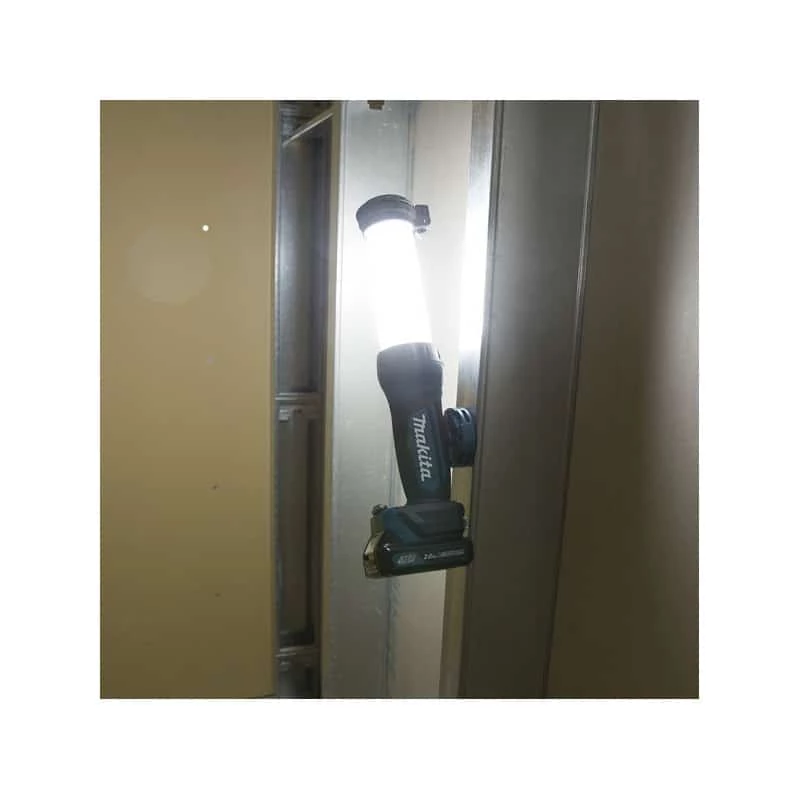 A la fois lampe torche et néon, la lampe sans fil Makita DEAML 104 offre un niveau de luminosité du tube néon réglable en fonction des besoins : 20 LEDS, 5 LEDS ou seulement 1 LED.