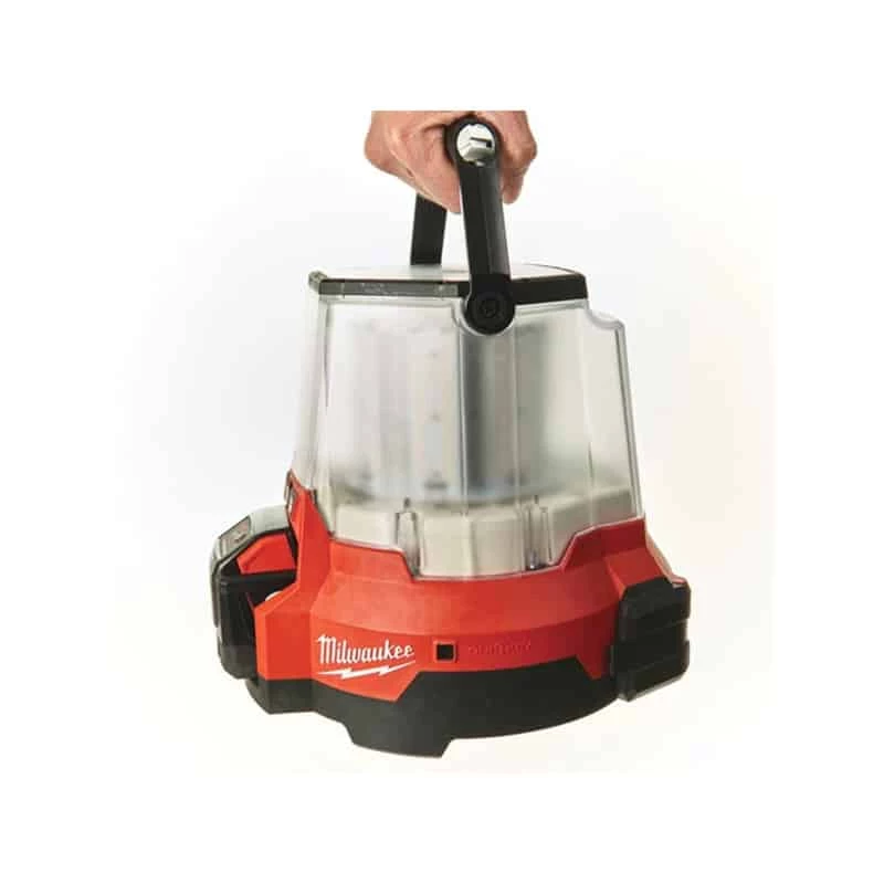 Avec une batterie 18V 5Ah, le projecteur de chantier Milwaukee M18 ONE SLSP offre jusqu’à 8 heures d’autonomie au niveau d’intensité le plus bas (1000 Lumens). Il est possible de l’utiliser sur secteur.