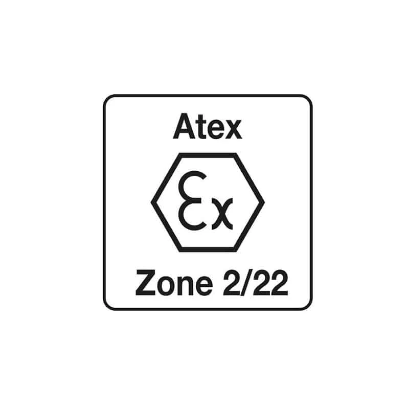 Elle répond aux exigences de la certification ATEX zone 2/22 (II 3 GD Ex nA ic IIB T4 Gc tc IIIC T135°C Dc) pour le travail dans un environnement exposé au risque d’explosion.