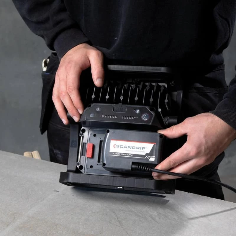 Pratique, vous pouvez recharger via USB des appareils mobiles. De plus, une poignée ainsi qu’un support flexible sont intégrés à la NOVA 4 CAS afin de transporter facilement le projecteur de chantier et de le monter sans contraintes sur le trépied ScanGrip TRIPOD.