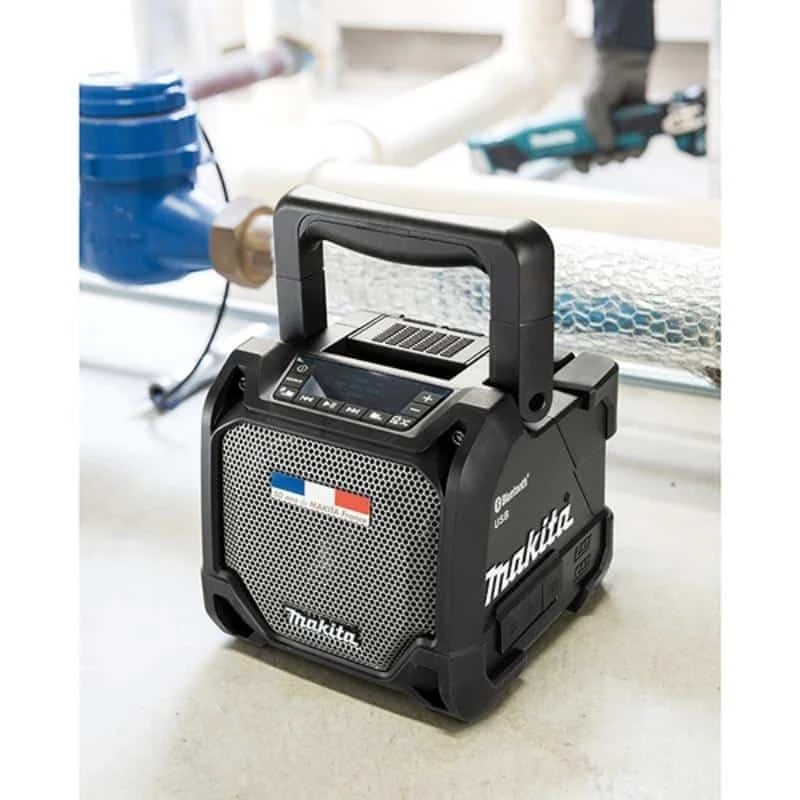 L’enceinte Makita est composée de 2 Enceintes : 1 x ø100 mm Boomer (basse fréquence) / 1 x ø36 mm Tweeter (haute fréquence). Elle est équipée de la fonction Bluetooth fonction 2 d’une portée de 10 mètres. La fonction IP64 apporte une protection totale contre la poussière et contre les éclaboussures. Elle est alimenté par batterie ou par le secteur 230V en Hybride. L’enceinte est compatible avec les batteries Li-Ion 10,8V CXT, 14,4V et 18V à empreinte standard. 1 entrée USB est disponible pour recharger des portables ou autre produit compatible. Une enceinte très Pratique avec sa poignée facilitant le transport afin de prendre l’enceinte n’importe où.